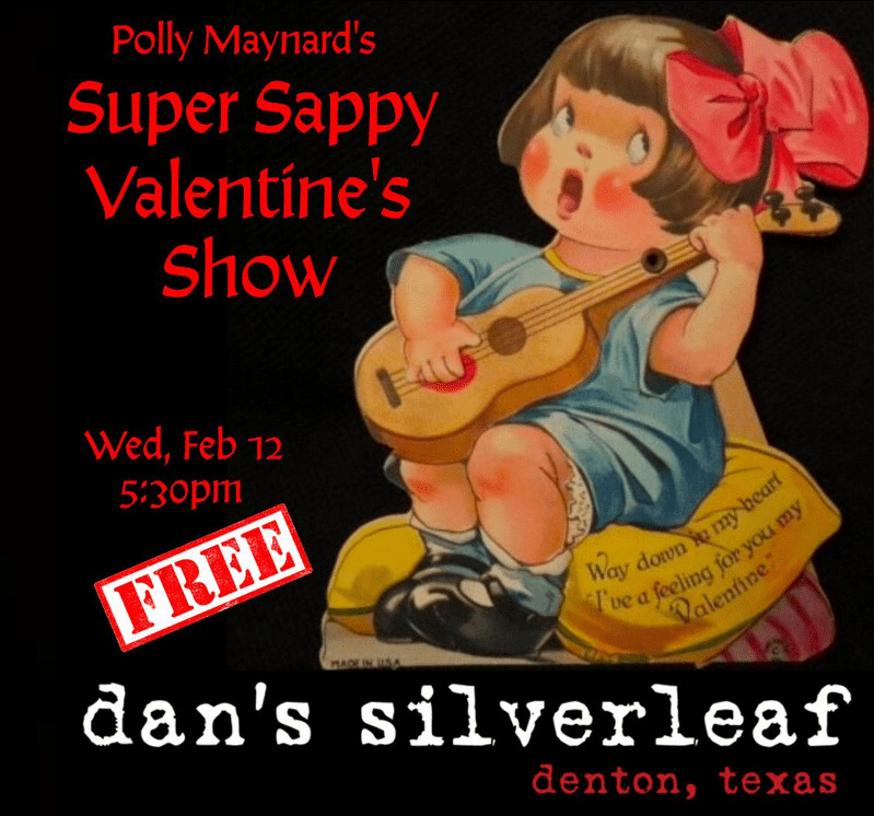 Join Miss Polly Wednesday, February 12 at Dan’s Silverleaf (map) for a SUPER SAPPY VALENTINE’S SHOW! Show starts at 5:30. No Cover!!